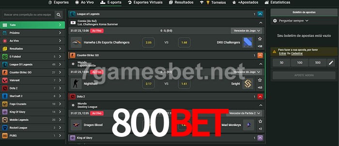 O 800bet oferece uma grande seleção de opções de apostas em e-sports com probabilidades competitivas